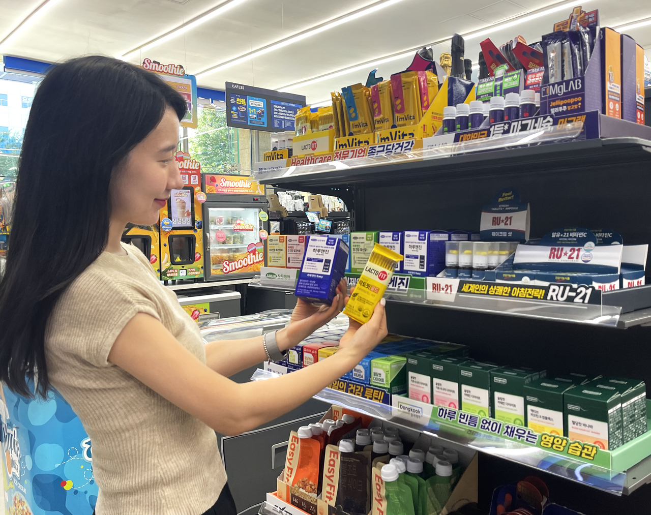 | 서울의 한 편의점을 찾은 고객이 건강기능식품을 살펴보고 있다. [GS리테일 제공] |