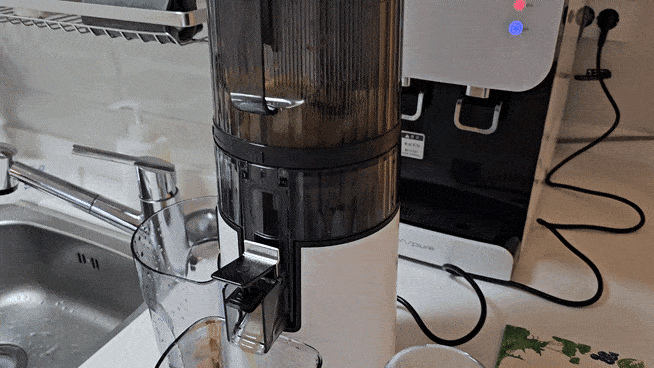 5종의 주스키트 착즙은 모두 휴롬 H410을 사용했다. 본체와 호퍼를 연결해 버튼을 누르면 설치는 끝이다. 키트에 담긴 채소와 과일을 통째로 호퍼에 넣어 착즙하면 5분 만에 주스가 완성된다. 채소와 과일을 자르지 않아도 되는 것이 간편했다.
