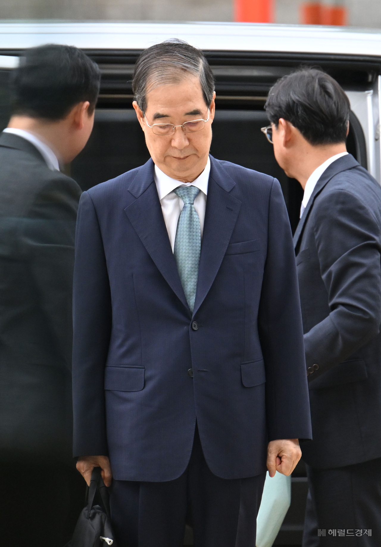 [헤럴드경제=임세준 기자] 내란 방조 혐의를 받는 한덕수 전 국무총리가 27일 오후 서울 서초구 서울중앙지법에서 열린 구속 전 피의자 심문(영장실질심사)에 출석하고 있다.