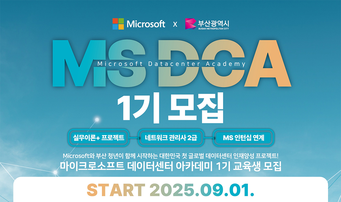 | 부산시와 마이크로소프트는 다음달부터 ‘마이크로소프트 데이터센터 아카데미(MS DCA)’를 운영한다. 사진은 MS DCA 1기 모집 포스터. [부산광역시 제공] |