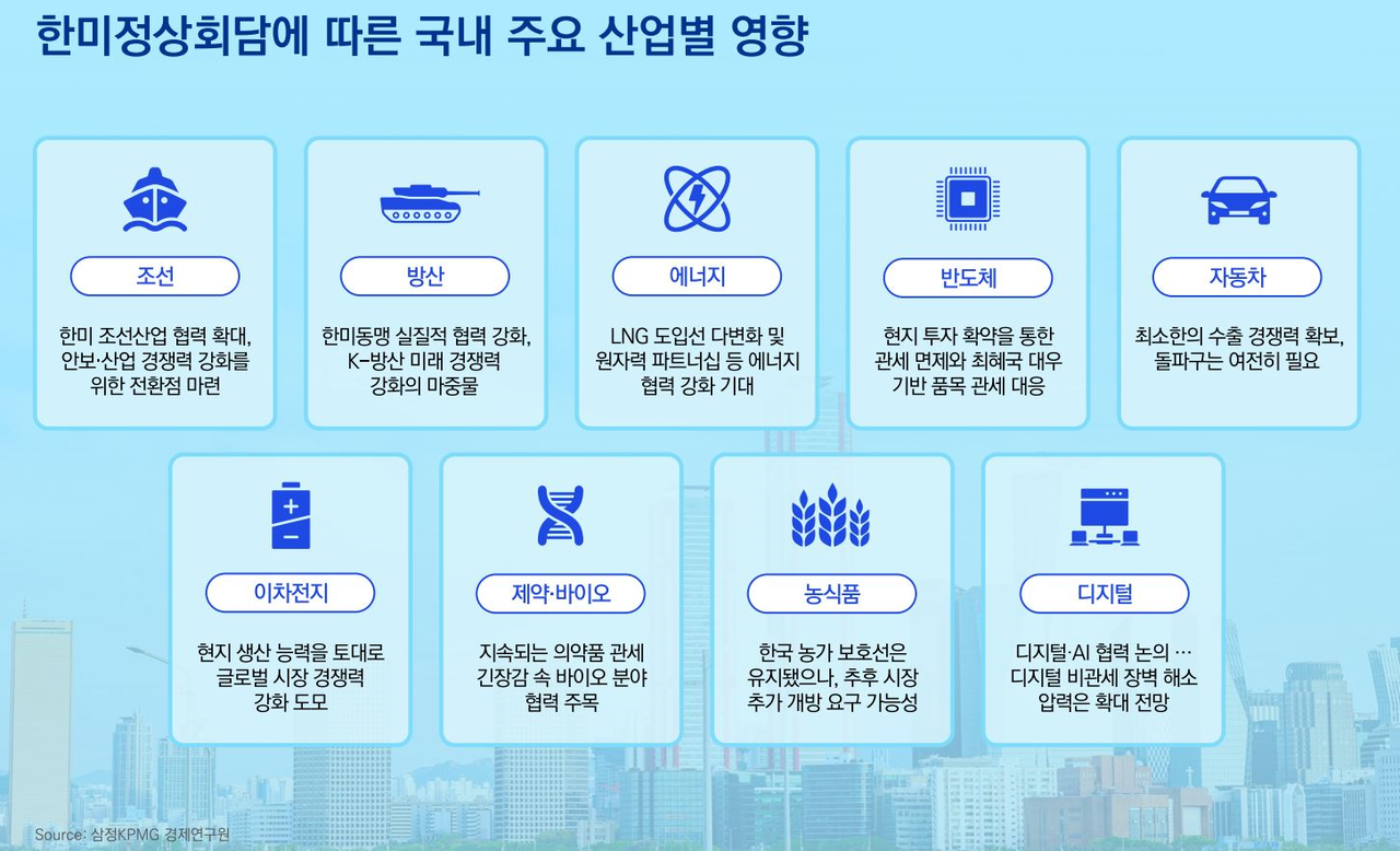 | 한미정상회담에 따른 국내 주요 산업별 영향[삼정KPMG 제공] |