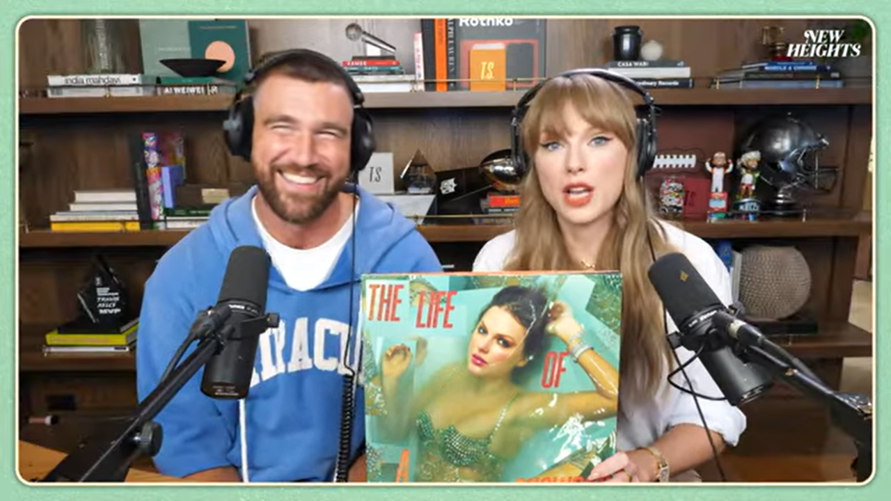 | 지난 13일(현지시간) 테일러 스위프트가 그녀의 남자친구 트래비스 켈시가 진행하는 팟캐스트 ‘뉴하이츠’에 출연해 앨범을 발표하고 있다. |