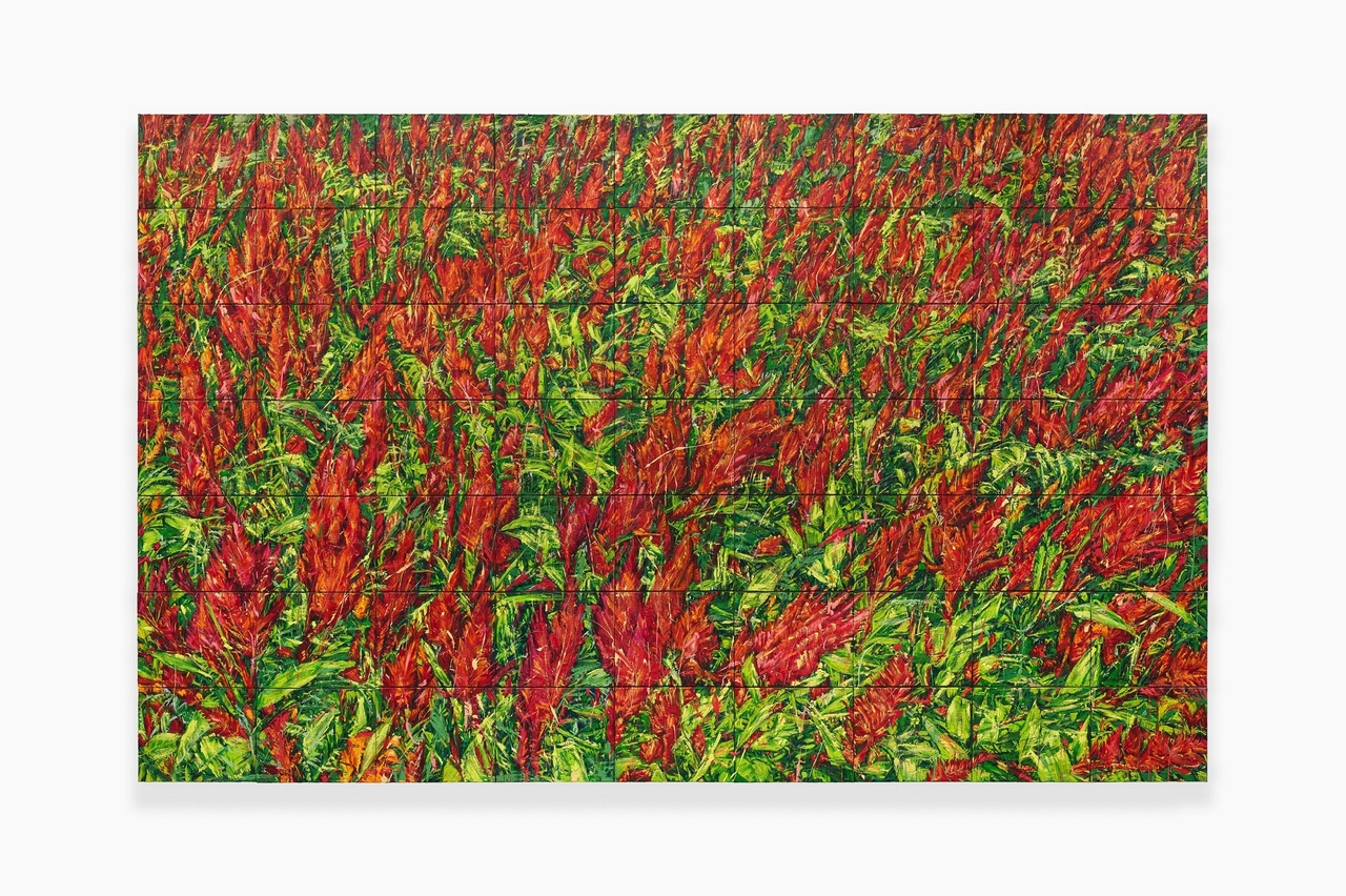 멀리서 보면 하나의 거대한 유기체적인 면으로 다가오지만 가까이 다가설수록 거칠게 쌓인 붓 터치들이 겹겹이 쌓여 다층적인 삶의 형상과 이야기를 드러낸다.