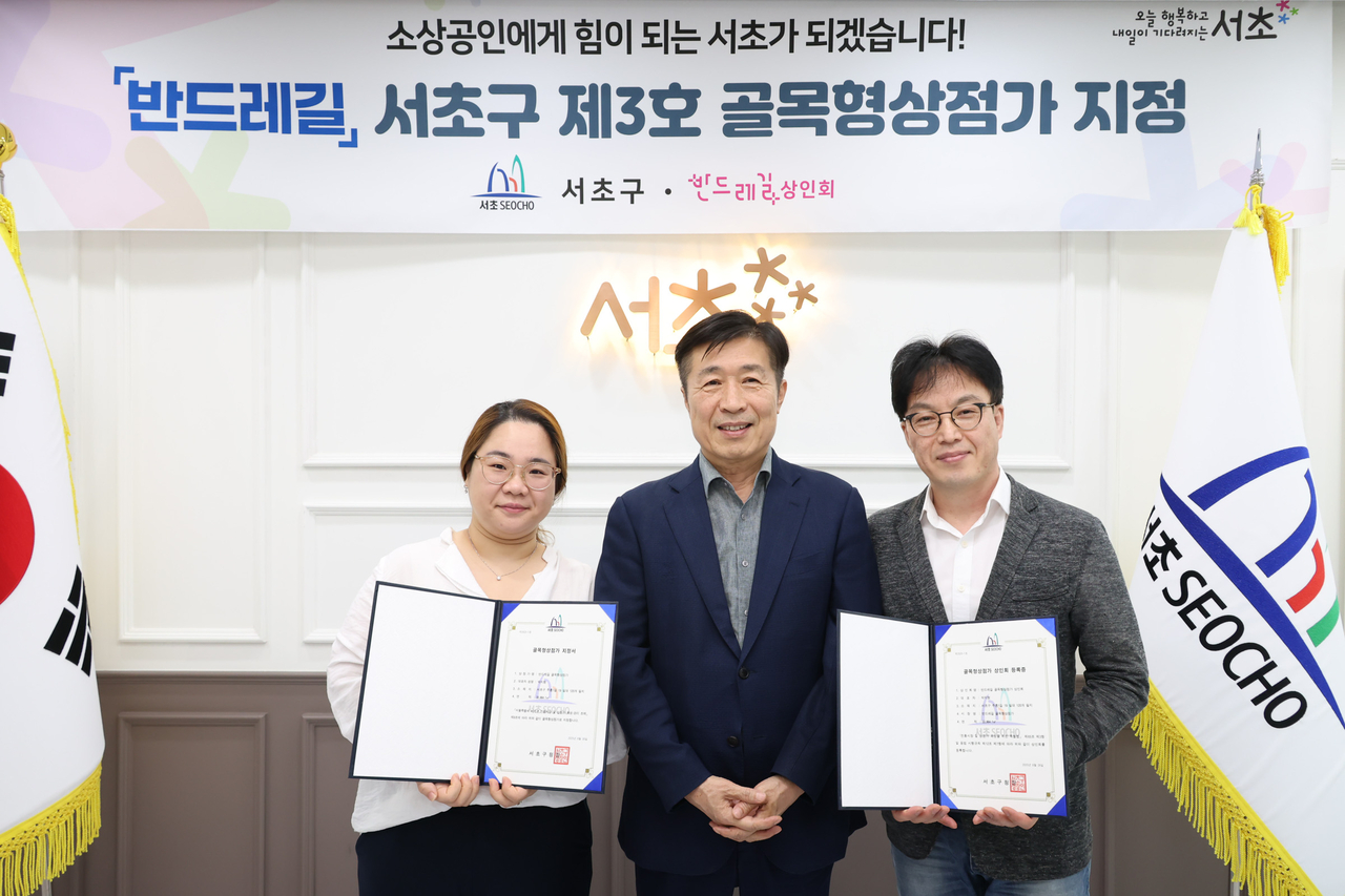 이후 구는 서울신용보증재단 서초지점과 함께 지역 내 전체 12개 주요 상권 중 밀집도 요건을 충족하고 상인들의 의지가 강한 상권을 발굴해, 이들이 상인회를 구성하고 골목형상점가 지정 관련 신청 사항들을 준비할 수 있도록 지원했다. 그 결과 지난 2023년 지정된 제2호 골목형상점가 ‘서초쇼핑’ 이후 2년 만에 ‘반드레길 상권’이 ‘제3호 골목형상점가’로 지정되는 결실을 맺었다.