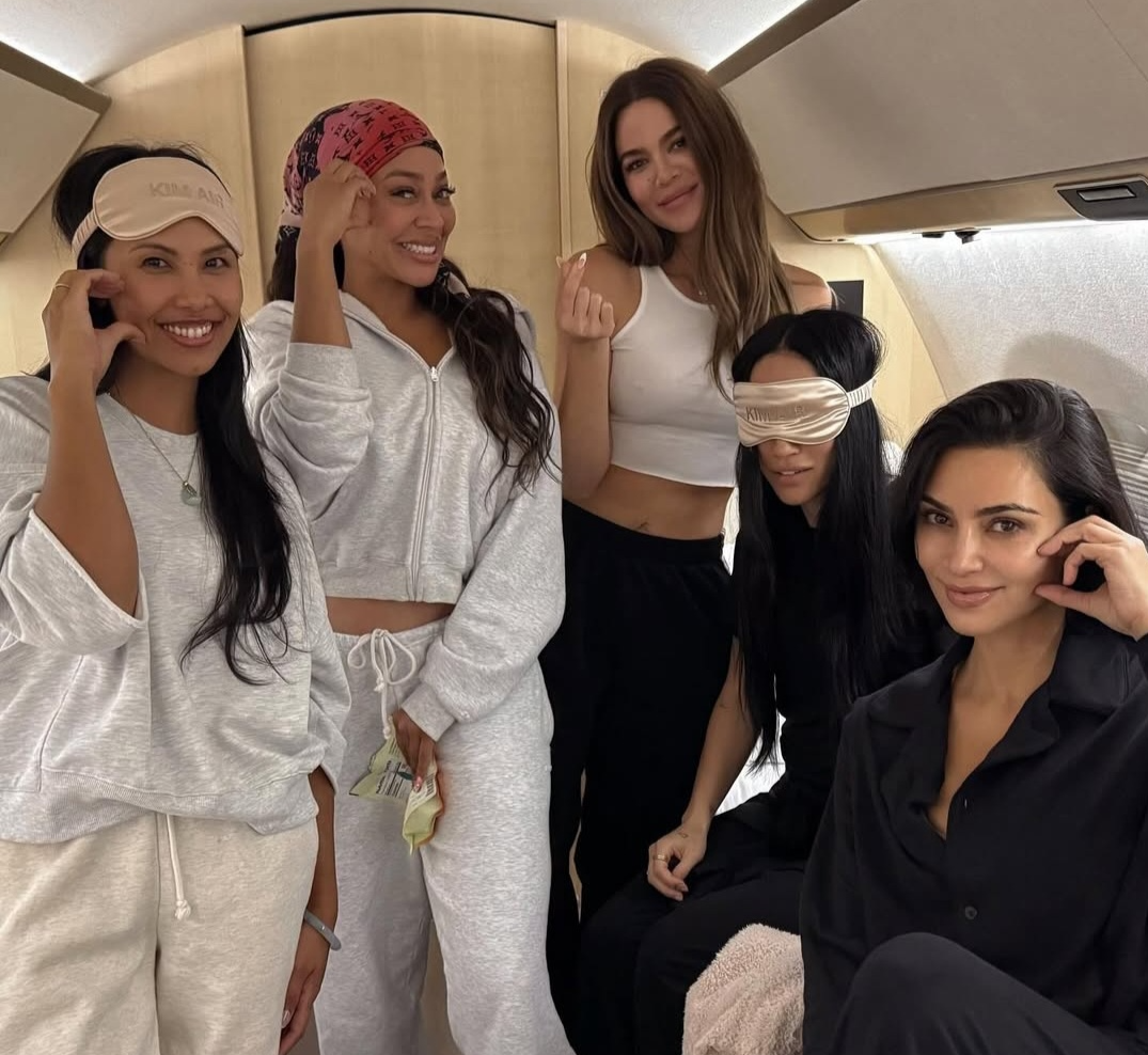 | 킴 카다시안과 일행들이 전용기 ‘킴 에어’에서 사진찍은 모습. [킴 카다시안 인스타그램 갈무리] |