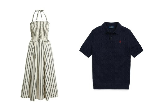 | 스위프트가 약혼 사잔에서 입업선 랄프 로렌 드레스(왼쪽)과 그의 남자친구 켈시가 입은 니트 폴로 티셔츠 [랄프 로렌 홈페이지] |