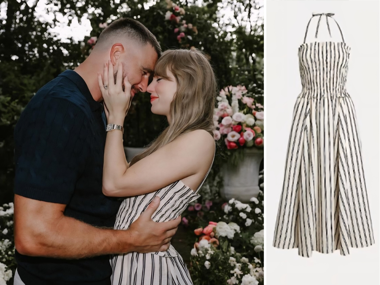 | 테일러 스위프트와 트래비스 켈시의 약혼식 모습(왼쪽)과 스위프트가 약혼식에서 착용한 랄프 로렌 드레스 [테일러스위프트 SNS, 랄프 로렌] |
