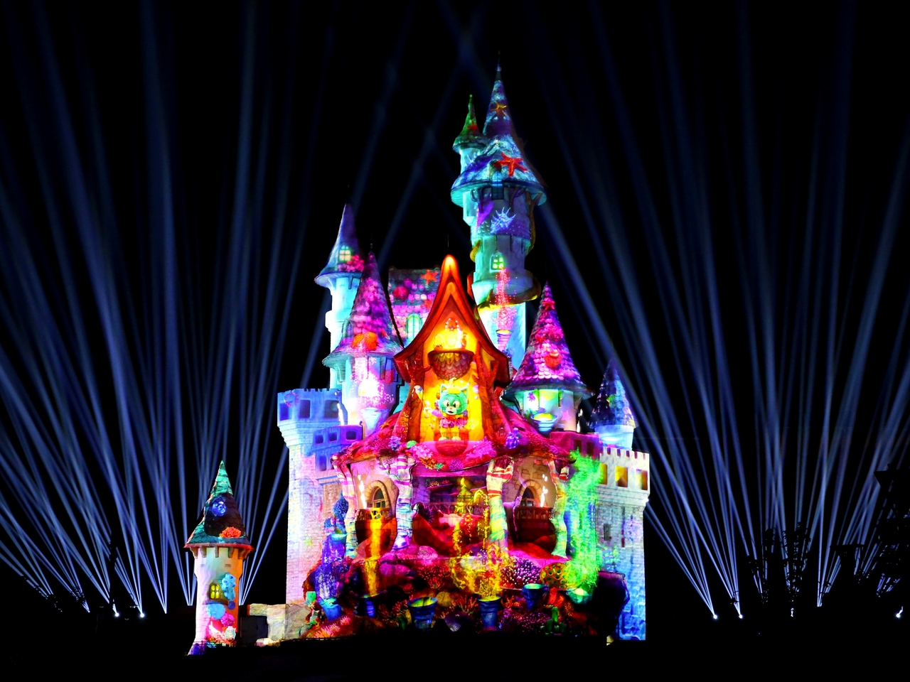 로리캐슬 좌우에서 하늘 높이 치솟는 무빙 빔 라이트는 성을 한층 더 돋보이게 하며, 레이저 연출을 통해 영상으로 펼쳐지는 장면을 더욱 화려하게 장식하는 등 다양한 특수효과가 어우러진다. 특히 세계적 수준의 디지털 미디어 콘텐츠를 제작하는 디스트릭트(d’strict)와 협업해 이번 멀티미디어 맵핑쇼의 완성도를 높였다.