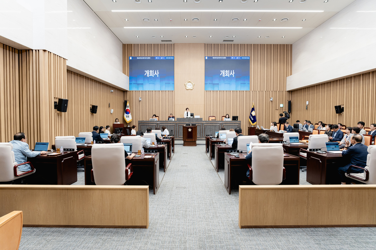 임시회 첫날인 29일 오전에는 개회식과 제1차 본회의를 열어 회기를 시작했다. 전은혜 의장은 개회사를 통해 “광복 80주년을 맞아 자유와 독립의 가치를 되새기고, 민주주의와 공동체 가치의 중요성을 다시 생각하는 계기로 삼자”며 “이번 임시회에서는 조례안 및 추가경정예산안 심사, 행정사무감사 계획서 채택 등 중요한 안건들이 많기 때문에 지역경제 활성화와 구민의 안녕을 위해 의회, 집행부가 함께 노력해 주길 바란다”고 말했다.