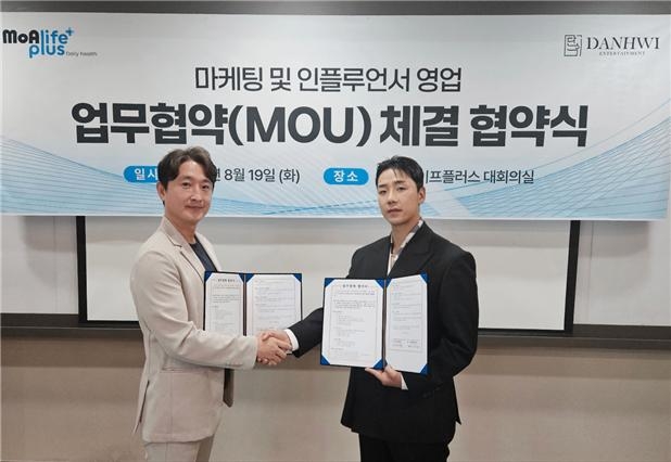 | 글로벌 뷰티·헬스케어기업 모아라이프플러스가 지난달 19일 틱톡 라이브 전문 에이전시인 단휘엔터테인먼트(이하 단휘엔터)와 전략적 업무협약(MOU)를 체결하고 있다. [모아라이프플러스 제공] |