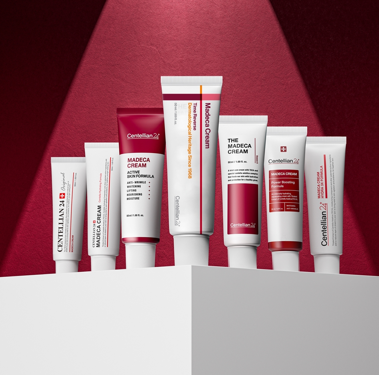 센텔리안24는 소비자들의 다양한 피부 고민에 대응하기 위해 마데카 크림 라인을 지속적으로 확장하며, 현재까지 총 7종을 선보였다. 2015년 출시한 첫 ‘마데카 크림’부터 ‘마데카 크림 센텔라 하이드레이팅 포뮬러’, ‘마데카 크림 하이드라 3X 포뮬러’, ‘마데카 크림 파워 부스팅 포뮬러’, ‘마데카 크림 액티브 스킨 포뮬러’, ‘더 마데카 크림’, ‘마데카 크림 타임 리버스’까지, 각각 차별화된 효능의 제품으로 다양한 연령층의 피부 고민에 대한 솔루션을 제시하고 있다.