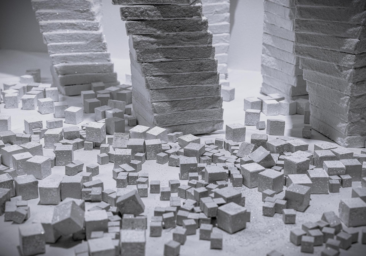 | 박현희, 빛의 호흡-빛 조각, 석채 및 혼합재료, 2x2x2(h)cm 큐브(수량 가변), 2025 |