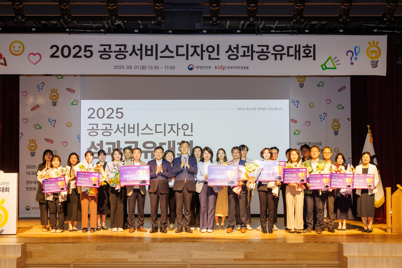 [헤럴드경제=유재훈 기자]행정안전부(장관 윤호중)가 주최하고 한국디자인진흥원(원장 윤상흠·이하 KIDP)이 주관하는 ‘2025년 공공서비스디자인 우수과제 성과공유대회’가 1일 정부세종청사에서 개최됐다.