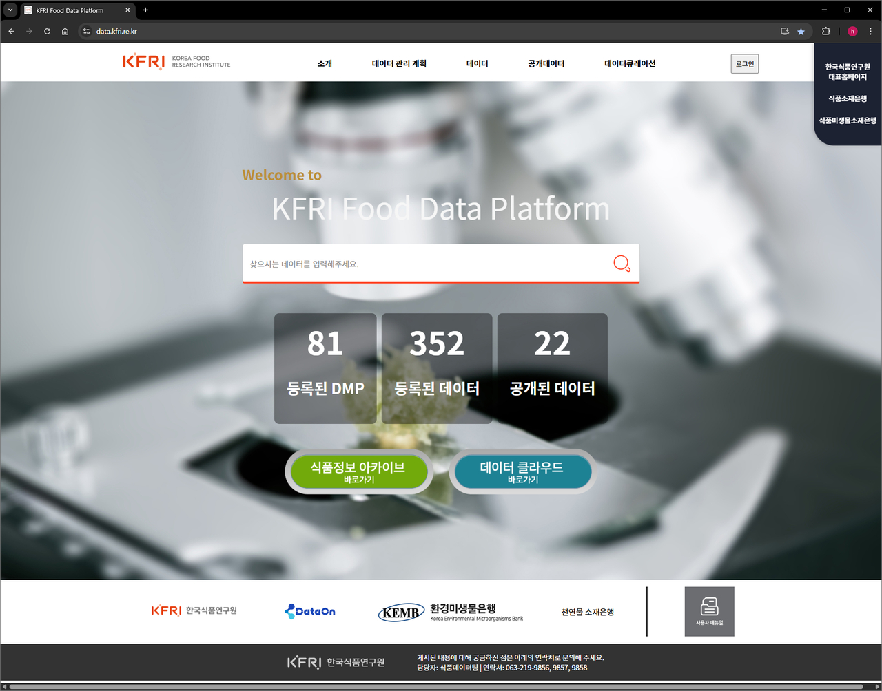 | 식품데이터플랫폼 메인화면.[한국식품연구원 제공] |