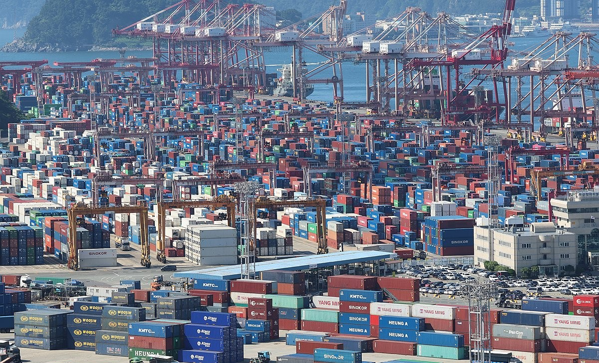 | 컨테이너가 쌓여 있는 부산항 신선대부두. [연합] |