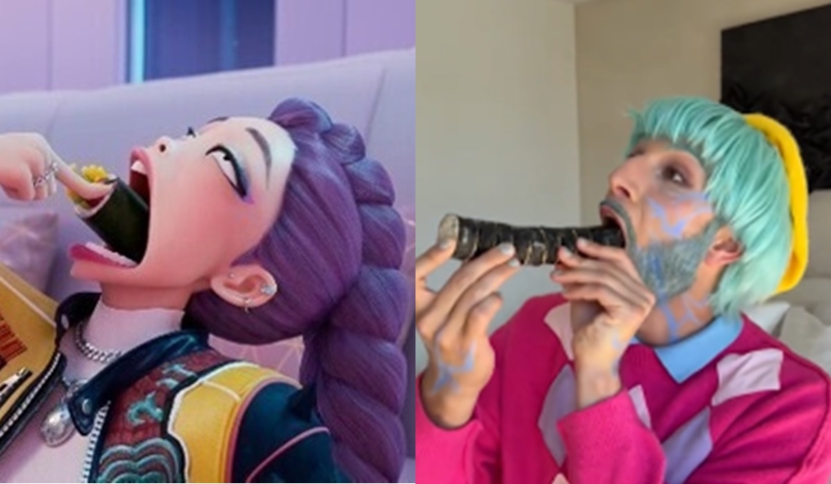 ‘케이팝 데몬 헌터스’에서 김밥을 자르지 않고 통째로 먹는 장면이 화제가 되면서, 틱톡에서는 ‘김밥 한입 먹기’ 챌린지가 유행하고 있다.