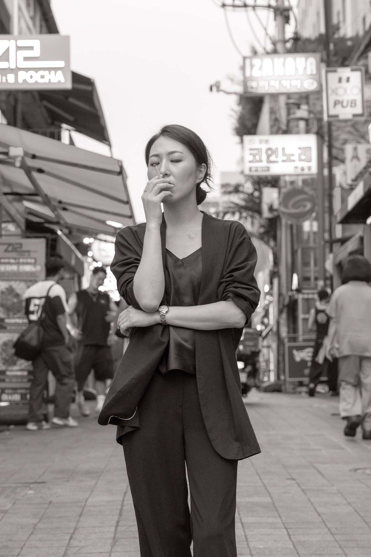 이번에도 대성공. 한 번도 손에 쥔 적 없던 담배를 꺼내 몇 번이나 불을 붙이고, 아찔한 힐을 신고 의자 위에 올라가 쪼그려 앉는다. 이소연에게서 보지 못한 얼굴이 나왔다. 응큼하고 뻔뻔했다. 심지어 끔찍했다. 감정은 거세된 관찰자의 시선은 객석을 두렵게 했다. 그는 관객 모두를 심청을 죽음으로 내몬 공범으로 만든다. 그런데 요염했고 그러다 가여워진다. 요나 김 연출가는 이소연을 “나의 페르소나”라고 했다.