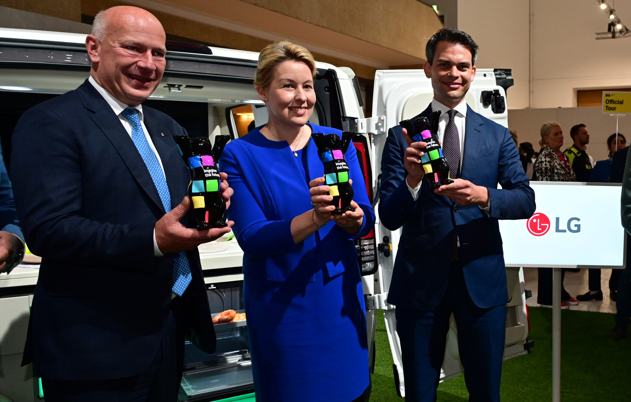 | 카이 베그너(왼쪽 첫 번째) 독일 베를린 시장과 프란치스카 기파이 베를린 부시장 겸 경제에너지당국 의원이 5일(현지시간) 유럽 최대 가전 전시회 IFA 2025에 참가한 LG전자 전시관을 찾았다. [LG전자 제공] |