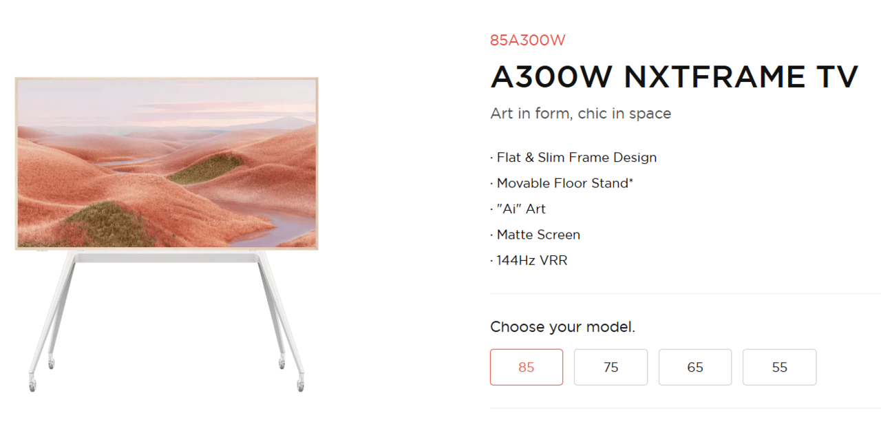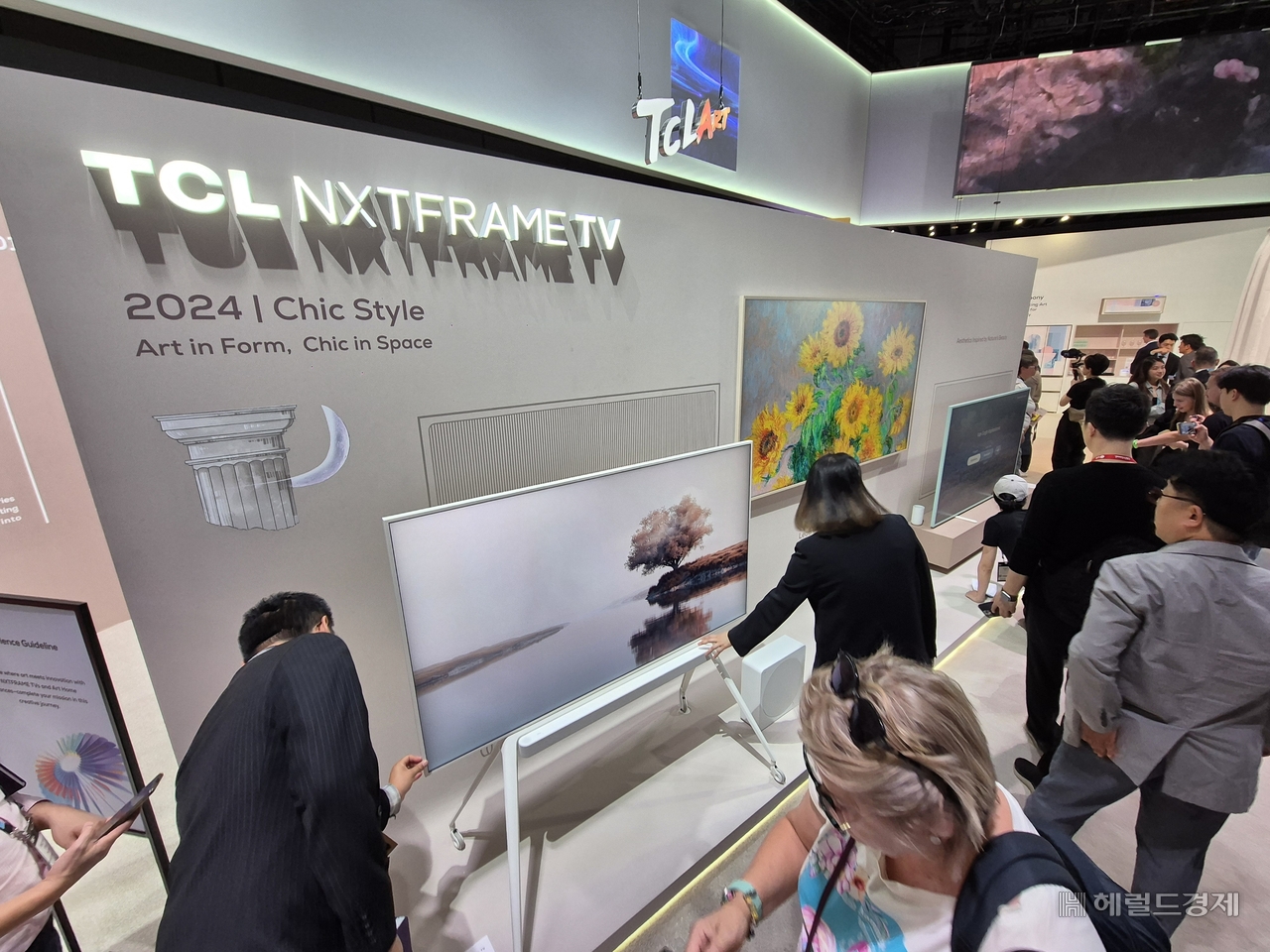 TCL은 이를 모방해 지난해 IFA 2024에서 전시관을 미술관처럼 꾸미고 ‘NXT FRAME’ TV를 처음 선보였다. 액자형 TV부터 스탠드 TV까지 모두 ‘NXT FRAME’이라는 상표를 붙였다.