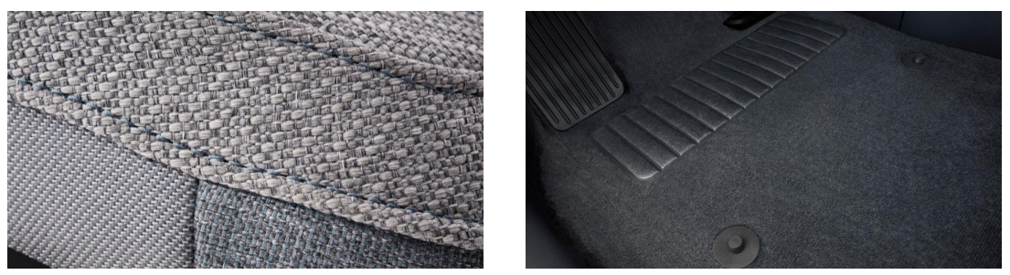 시트 소재 ‘에코니어(Econeer)’는 직물과 접착제, 실까지 100% 재활용 PET로 구성된 단일 소재 설계로 재활용성을 높였다. 엔진룸 커버와 보닛 하부 수납함에는 해양 플라스틱을 30% 사용했고, 회전 베어링·휠 캐리어엔 재활용 알루미늄 80%, 주조 알루미늄 휠엔 70%를 적용했다. 현재 차량의 외관과 내구성에는 영향을 주지 않는 선에서 최선의 선택이다.