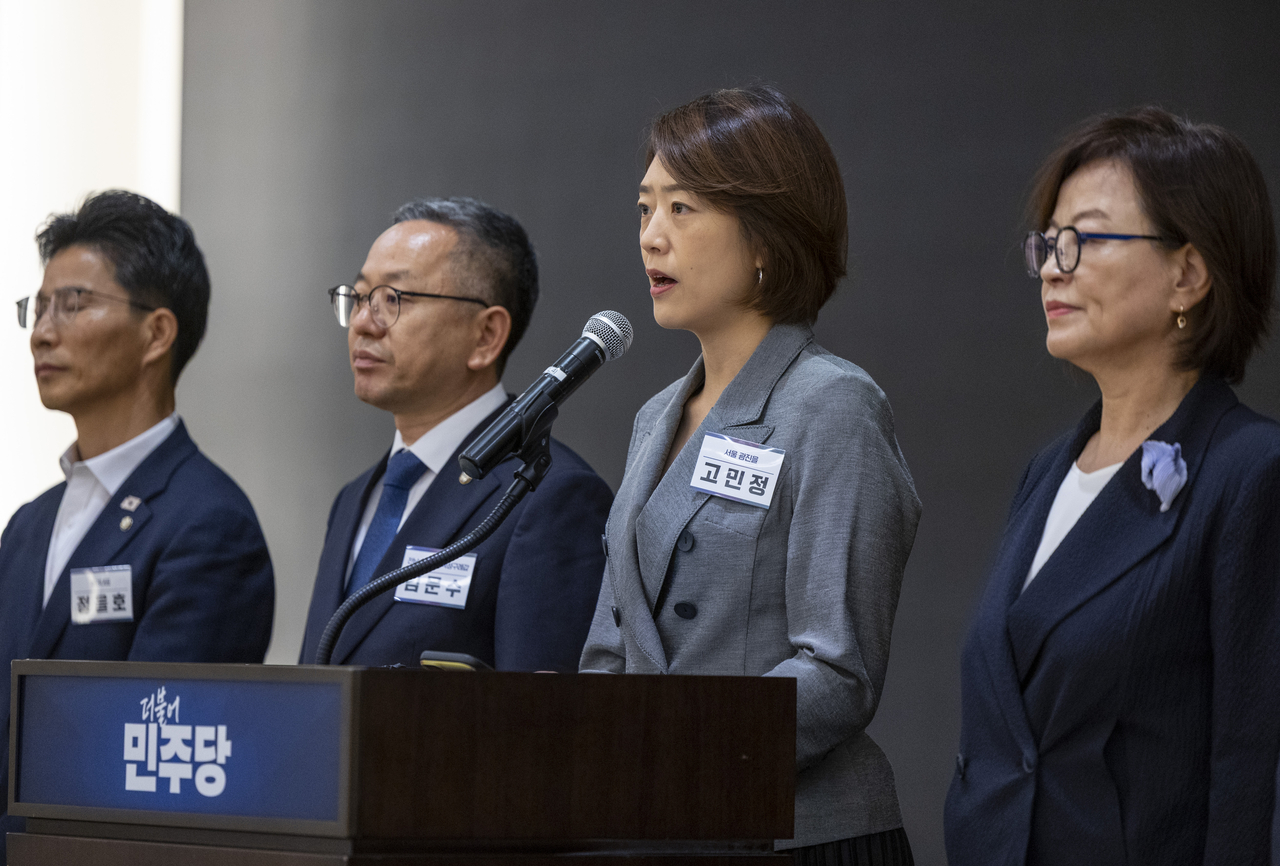 | 지난달 더불어민주당 고민정 의원을 비롯한 국회 교육위원회 소속 의원들이 민주당 워크숍이 열린 인천 중구 파라다이스시티 컨벤션에서 이배용 국가교육위원회 위원장 사퇴를 촉구하는 기자회견을 하고 있다. [연합] |