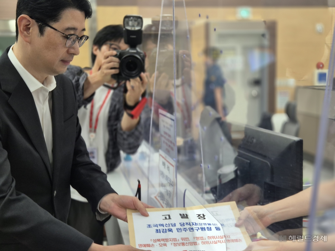 | 주진우 국민의힘 의원이 8일 서울경찰청에서 조국혁신당 성 비위 사건과 관련해 2차 가해 의혹을 제기하고 성폭력방지법 위반, 명예훼손 등 혐의로 조국혁신당 당직자들과 더불어민주당 최강욱 전 교육연수원장에 대한 고발장을 제출했다. 김도윤 기자. |