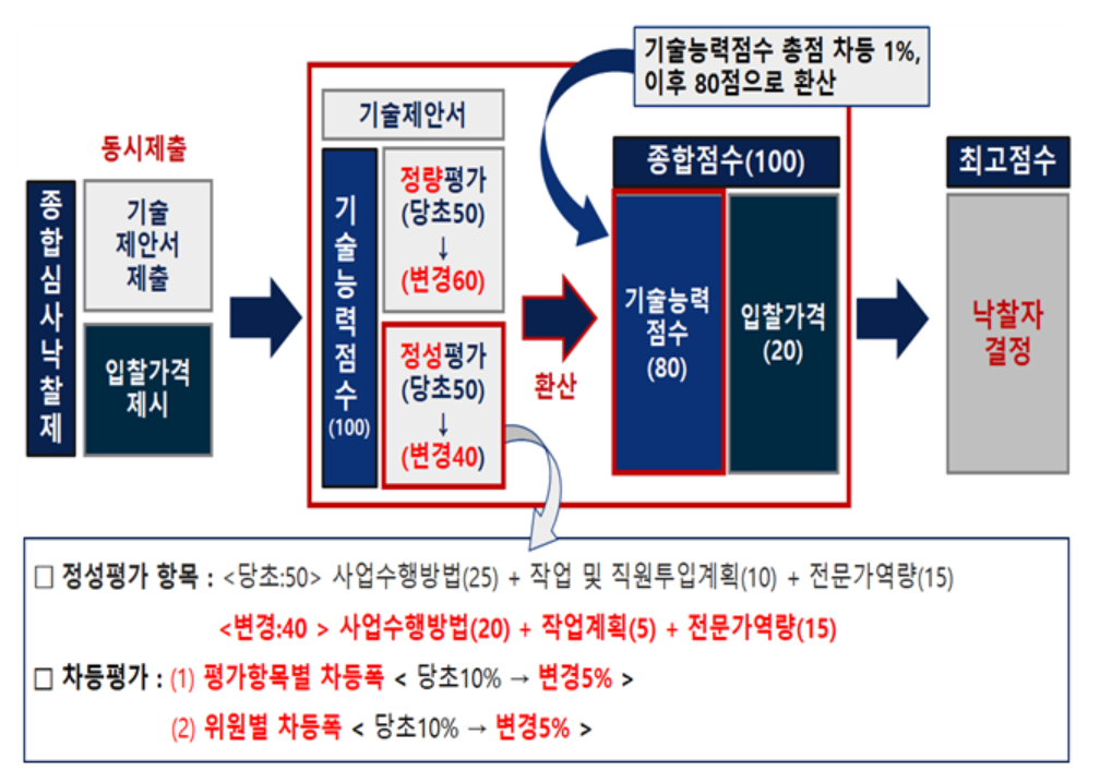 ▶공정성·투명성 강화= 이번 개정된 심사 규정에서는 과도한 입찰 로비 등 부작용을 낳았던 평가 방식에 대한 공정성을 높이기 위해 정성평가 비중을 축소, 정성 : 정량 평가의 배점을 기존 ‘50 : 50’에서 ‘40 : 60’으로 조정했다.