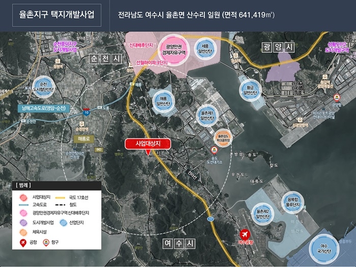 | 여수시 율촌면 택지개발사업구역 위치도. |