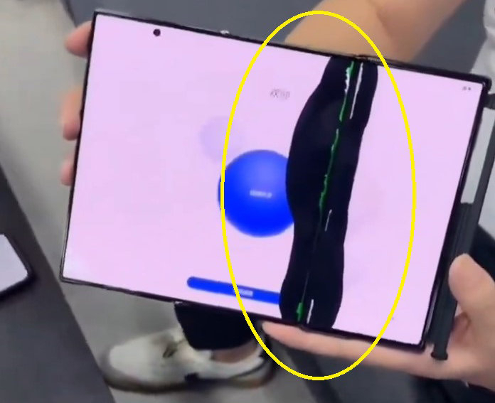 | 힌지 부분이 파손돼 화면이 검은색으로 변한 화웨이 메이트XT. [중국 동영상 플랫폼 비리비리] |