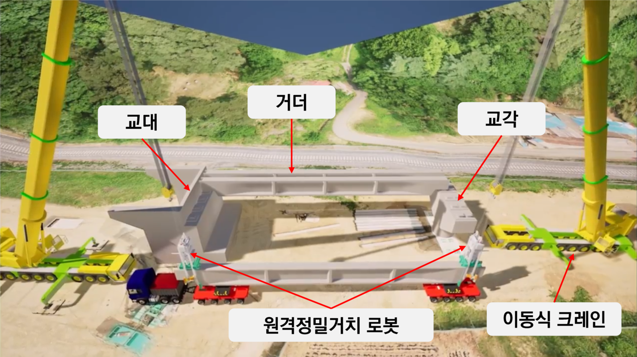 이 기술은 높은 위치에서 진행되는 작업 없이 지상에 설치되는 원격제어 시스템으로 원격정밀거치 로봇을 조종해 거더 설치 작업을 수행한다. 이번에 시험 적용된 교량은 대표적인 교량 형식인 거더교량으로, 기존에는 교각이나 교대 위에서 작업자가 직접 위치를 조정하며 거더를 설치해야 했다. 이 과정에서 작업자가 추락해 중상을 입거나 사망하는 사고가 발생할 수 있어, 추락 등 인명사고 위험을 원천적으로 제거할 수 있다는 점에서 큰 의미가 있다.
