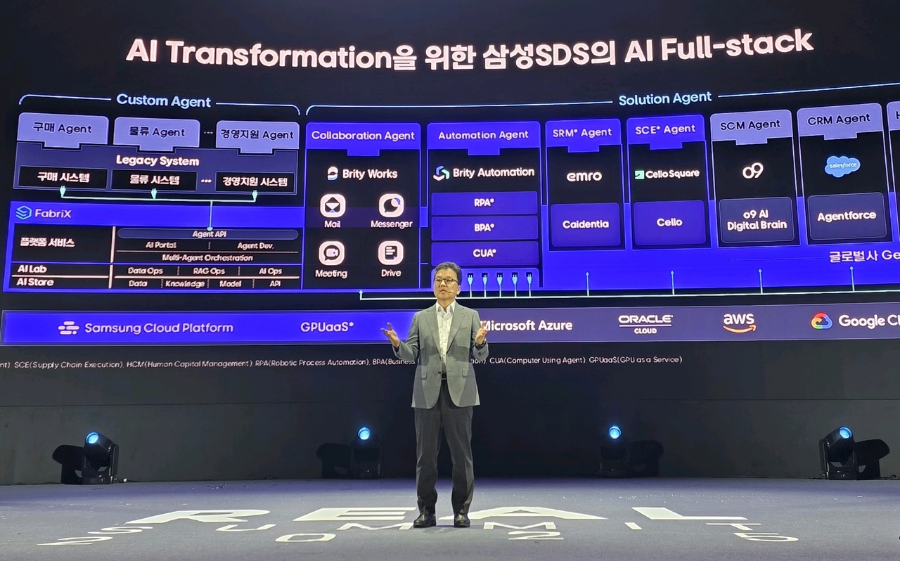 삼성SDS는 11일 서울 강남구 코엑스에서 고객초청행사 ‘리얼 서밋 2025’를 개최하고, AI 에이전트 기반 기업 혁신 전략을 발표했다. 삼성SDS는 인프라·컨설팅·플랫폼·솔루션 전 영역을 아우르는 ‘AI 풀스택’ 서비스를 통해 기업 고객의 AI 트랜스포메이션을 이끌어나갈 계획이다.