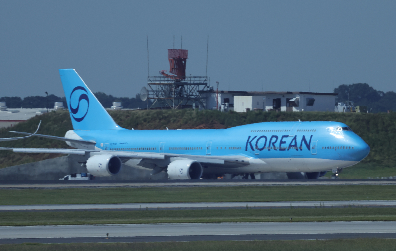 | 미국 이민 당국에 구금됐다가 풀려난 한국인 근로자들이 탑승한 대한항공 전세기가 11일(현지시간) 미국 조지아주 하츠필드-잭슨 애틀랜타 국제공항에서 활주로로 이동하고 있다. [연합] |