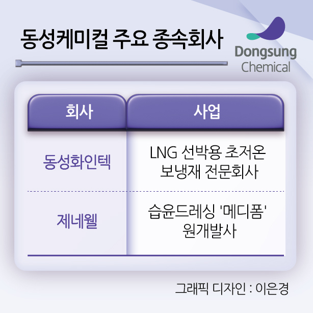 주요 자회사 동성화인텍의 경우 LNG선박에 필수 요소인 보냉재를 생산하고 있다. 동성화인텍은 2018년까지만 해도 적자 기업이었지만 이후 조선사들의 친환경 선박 수주가 늘어나면서 지금은 3년 이상의 수주잔고를 쌓았다. 국내 조선 3사인 삼성중공업, 한화오션, HD한국조선해양을 모두 고객사로 두고 있다.