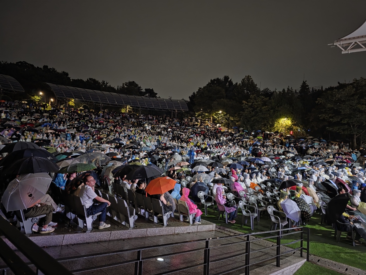 이번 연주회는 특별한 음악회였다. 비가 공연 내내 오는 ‘우중 야외 콘서트’임에도 관객들은 불편한 점을 내색하지 않고 우의를 입거나 우산을 쓴 채 시종일관 자리를 지키고 앉아 감상하고 있었다.