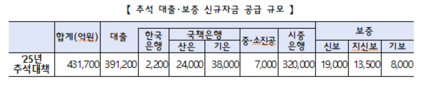 정부는 신규 명절자금 43조2000억원을 공급하고, 기존 61조원 대출 만기 연장도 병행한다.