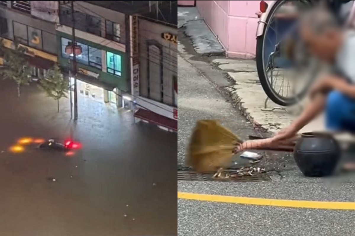 그런데 침수 피해 직후인 15일, 온라인 커뮤니티에는 침수 피해가 발생한 군산 지역의 한 하수구에 노인이 담배꽁초를 항아리째 쏟아붓는 영상이 올라왔다.