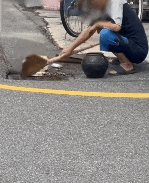 영상 속 노인은 항아리에 들어있던 담배꽁초와 각종 생활쓰레기를 하수구에 그대로 쏟아부었다. 크기가 큰 쓰레기가 배수구 창살에 걸려 들어가지 않자, 빗자루로 밀어 넣는 모습까지 담겼다.