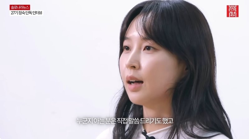 | ‘나는 SOLO(나는 솔로)’ 27기에 출연해 화제를 모았던 정숙이 자신을 둘러싼 학폭 루머 등에 강경 대응하고 나섰다. [유튜브 ‘촌장엔터테인먼트TV’] |