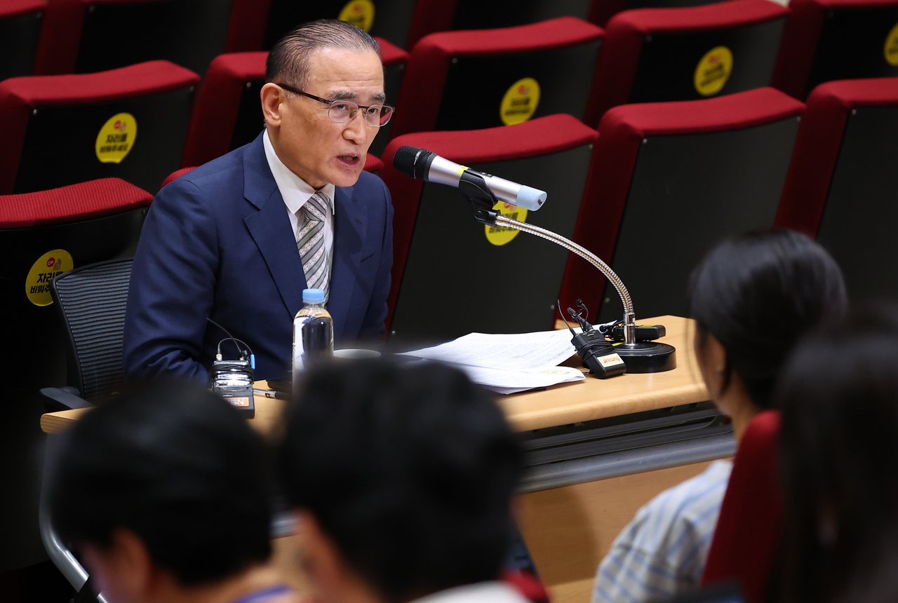 | 위성락 국가안보실장이 19일 용산 대통령실에서 이재명 대통령 UN 총회 순방 일정 관련 브리핑을 하고 있다. [연합] |