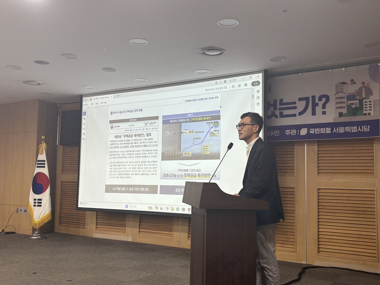 이날 토론은 ‘내일이 더 기대되는 서울’의 두 번째 토론회로, 박수민 국민의힘 의원이 주최하고 국민의힘 서울특별시당이 주관했다. 이창무 한양대 도시공학과 교수는 ‘서울시 주택공급 정책의 어제와 오늘’을 주제로, 김지엽 성균관대학교 건축학과 교수는 ‘주택정비사업과 신속통합기획, 성과와 과제’를 주제로 발제했다.