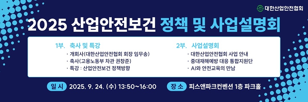 대한산업안전협회(회장 임무송, 이하 협회)가 정부의 산업안전보건 정책 방향을 공유하고, 기업의 안전 역량 제고를 지원하기 위해 ‘산업안전보건 정책 및 사업설명회’를 개최한다고 밝혔다.
