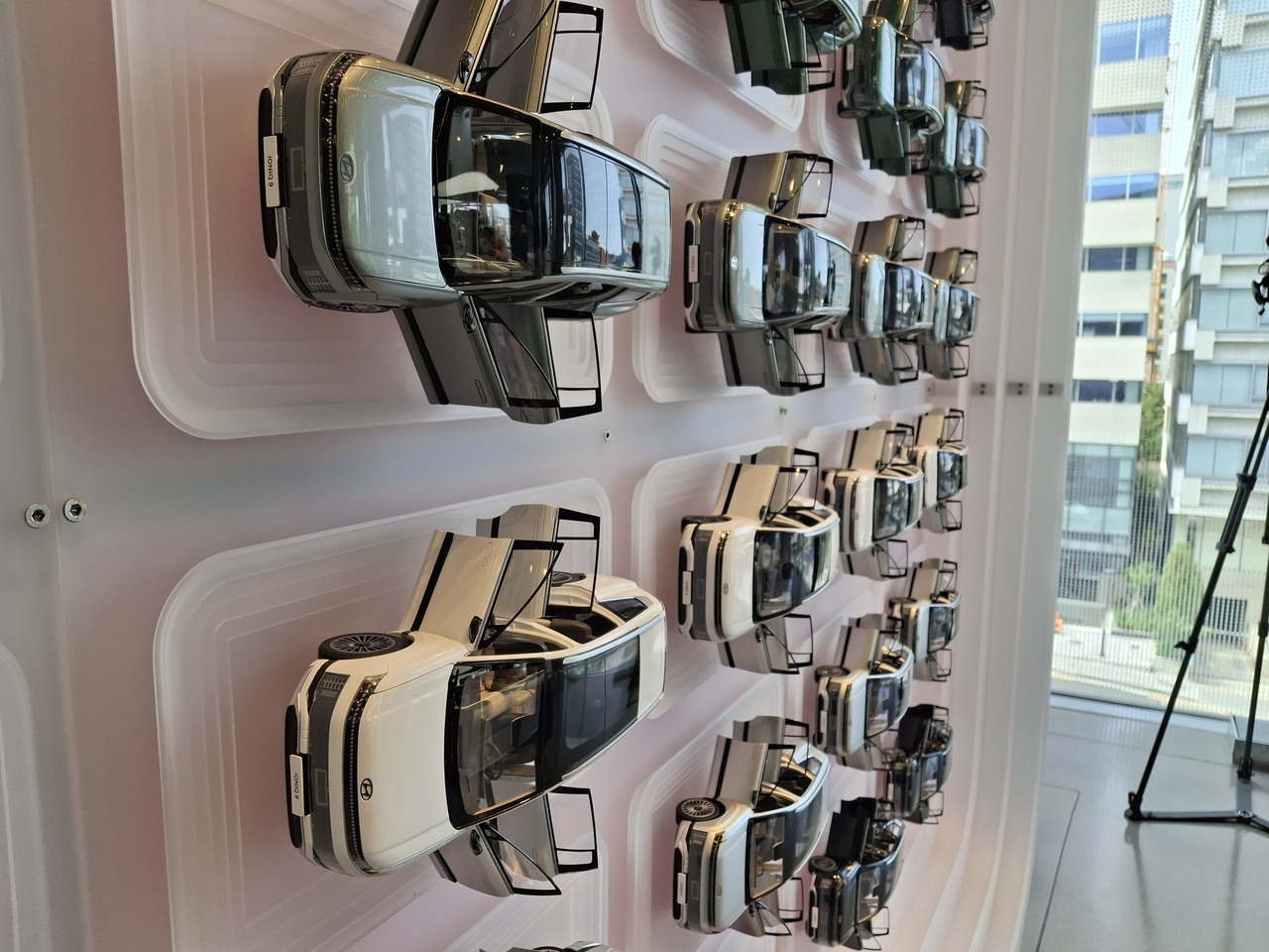 4층은 전기차 브랜드 아이오닉 공간이다. 벽을 가득 메운 108개의 아이오닉 9 다이캐스트가 눈길을 끌었다. 색상별로 다양한 내외장 옵션들을 조합했다. 공간을 안내한 현대차 관계자가 “실제 구입할 수 있는 내외장 조합들을 다채롭게 선보이고 있다”라면서 “미적으로 아름다운 조형물로 보이게 하면서도, 현대자동차그룹이 고객에게 제공하는 다양한 내외장 조합을 선보이려고 했다”고 말했다.