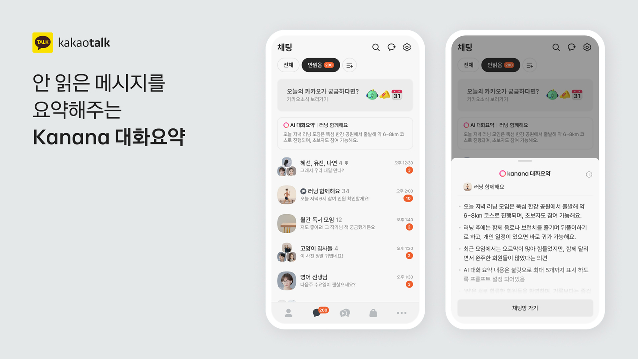 특히 읽지 않은 채팅방 메시지를 카나나가 요약해주는 기능을 도입해, 채팅방에 들어가지 않고도 사전에 채팅 내용을 파악할 수 있도록 돕는다. 여기에 지난 8월 도입한 ‘메시지 삭제’ 기능 개선에 이어 ‘메시지 수정’ 기능도 추가했다.