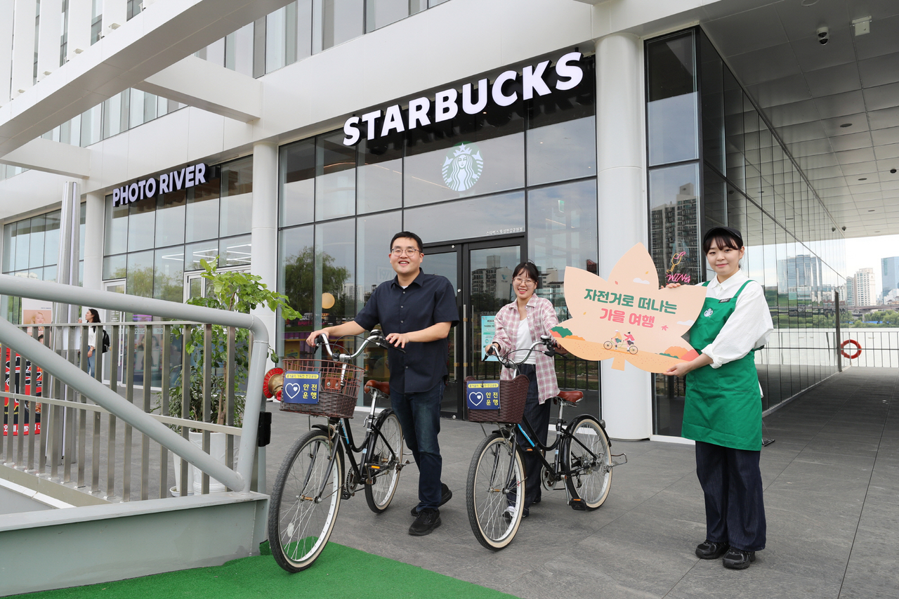 한국관광공사와 스타벅스는 지속가능한 국내여행 확산을 위해 지난 22일 뚝섬 한강공원 스타벅스 매장에서 ‘투어스 로컬 라이딩’ 선포식을 개최했다. 이날 선포식을 기점으로 양 사는 친환경 자전거 여행 공동사업에 힘을 모을 계획이다.