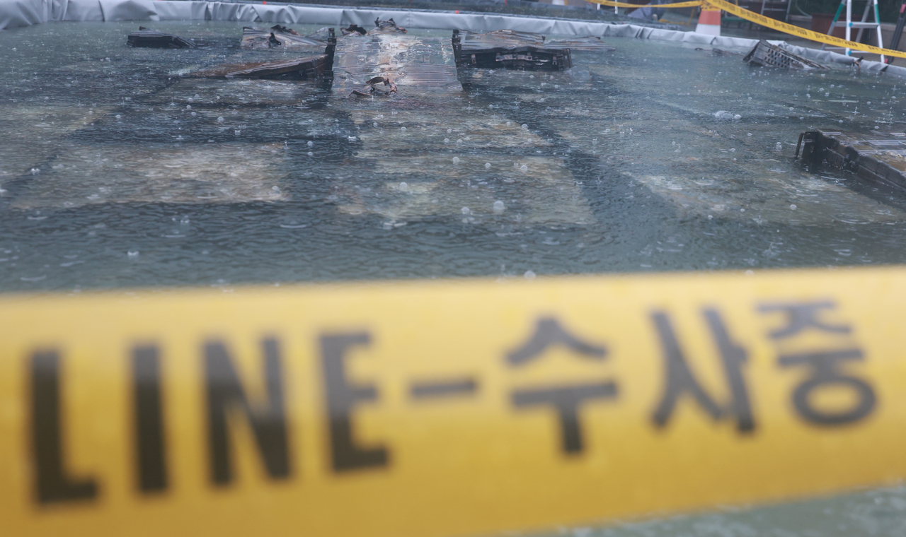 경찰은 전날 일부 시설 구성품을 확보해 감정 의뢰했다. 전산실에서 반출해 수조에 담가둔 배터리들은 2∼3일가량 잔류 전기를 빼내는 안정화 작업을 거친 뒤 국립과학수사연구원에 감식 의뢰할 방침이다.