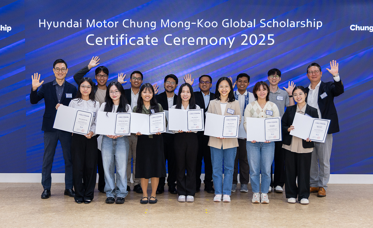 | 현대차 정몽구 스칼러십 2025년 가을학기에 선발된 아세안 석박사 장학생들이 장학증서 수여식에 참여하고 있다. [현대차 정몽구 재단 제공] |