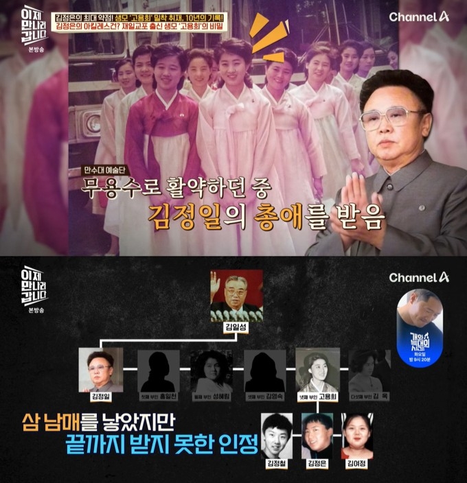이날 김정은 외할머니 이맹인의 사진도 처음으로 공개됐다. 이맹인은 1962년 재일교포 귀국 사업을 통해 북한으로 이주했으며 사진 속 모습이 김정은과 닮아 출연진을 놀라게 했다.