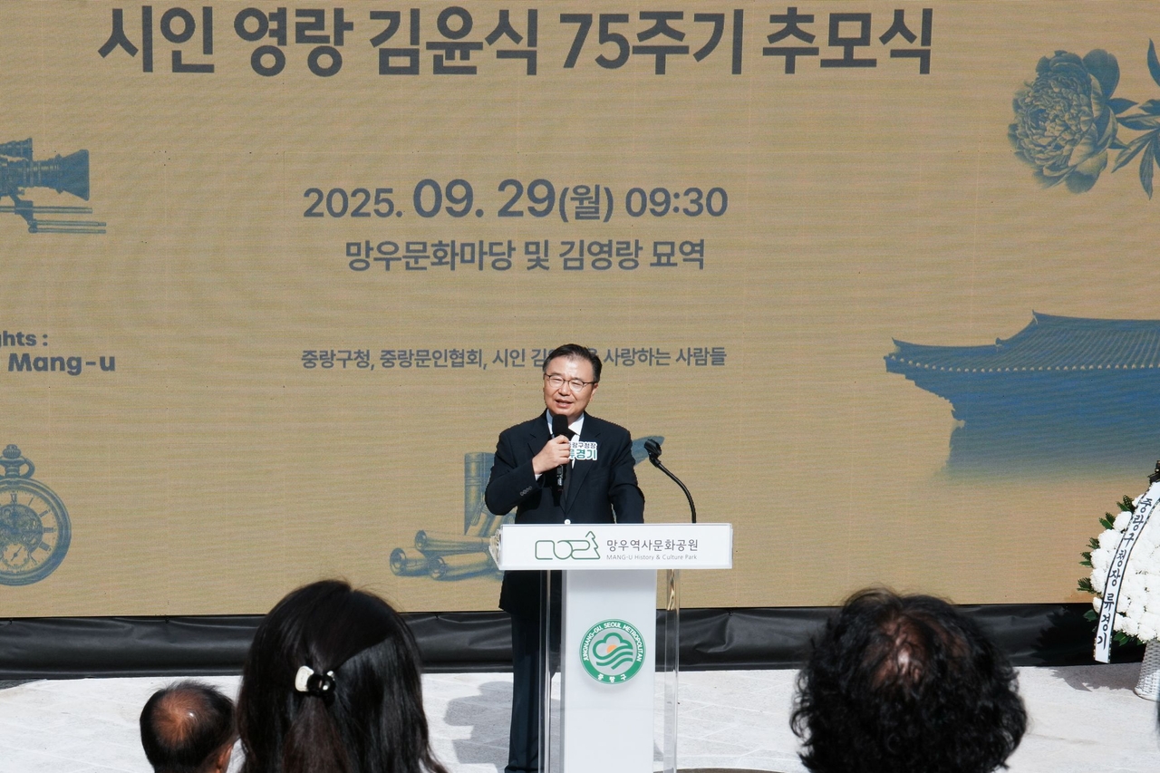 29일에는 김영랑 시인 제75주기 추모식이 열렸다. 유가족 및 중랑문인협회와 김영랑 시인을 사랑하는 모임이 함께한 이번 행사에서는 오카리나 공연, 추념사, 시 낭송, 헌화, 판소리 공연 등을 통해 독립운동가이자 문학가였던 김 시인의 삶과 문학 정신을 기렸다.