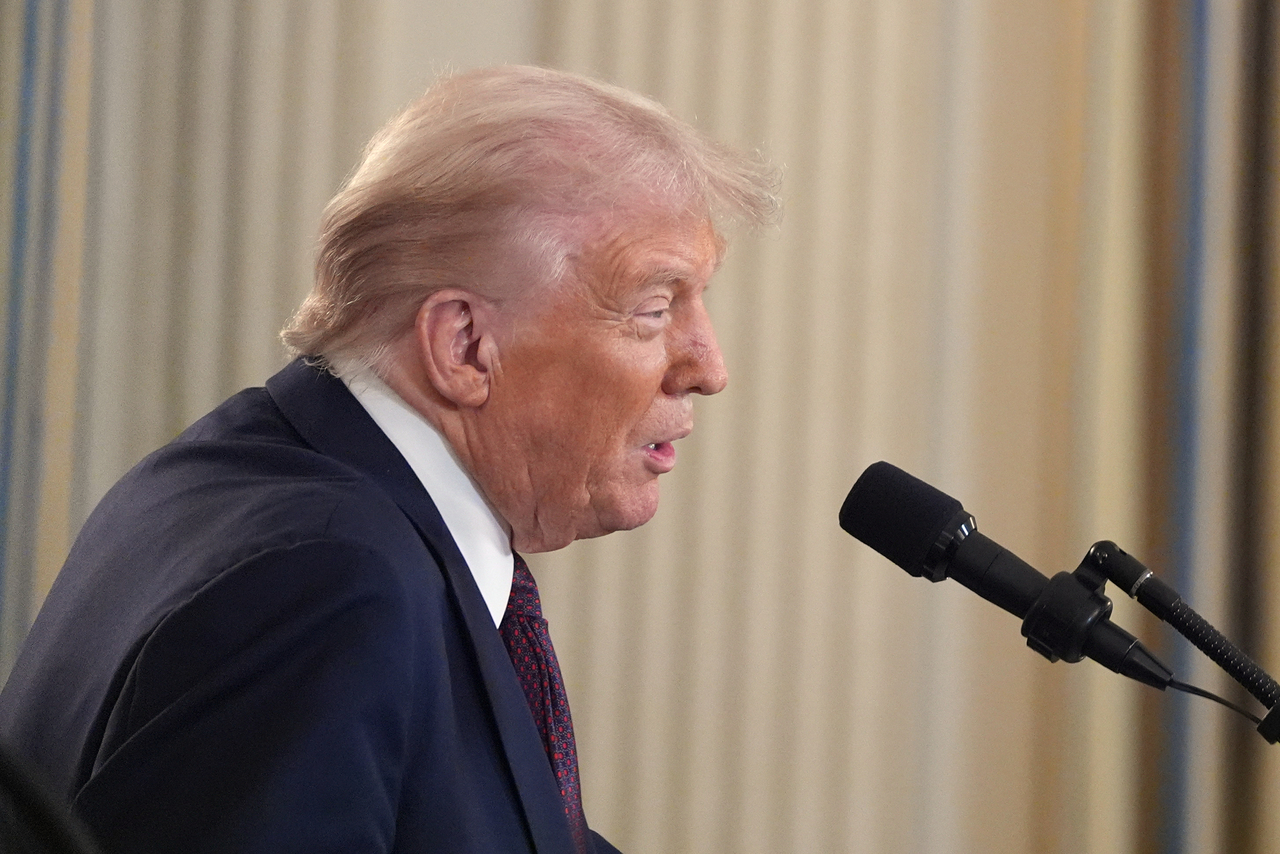 | 29일(현지시간) 미국 워싱턴 백악관 주 식당에서 베냐민 네타냐후 이스라엘 총리와의 공동 기자회견에서 발언하고 있다. [AP] |