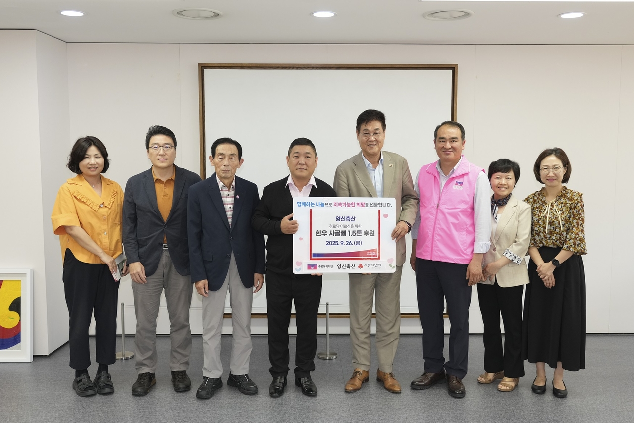 이날 영신축산은 추석 명절을 맞아 어르신들이 건강하고 행복하게 명절을 보내길 바라며 종로복지재단에 한우 사골 1.5톤을 전했다.